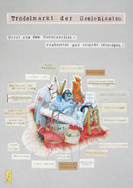 Meine „Erbauungswaren aus Papier“ entstehen aus eigenen Motiven und gestalterischen Ideen, einerseits kritisch-humorvoll, andererseits träumerisch-verspielt.